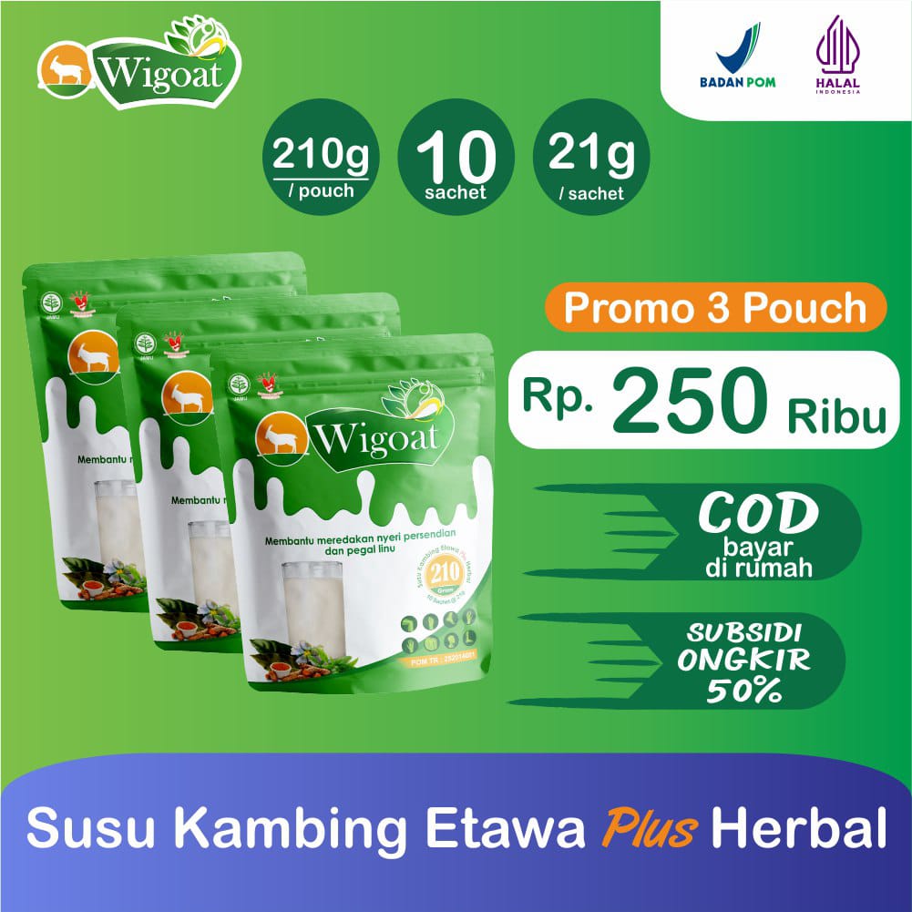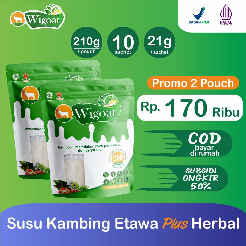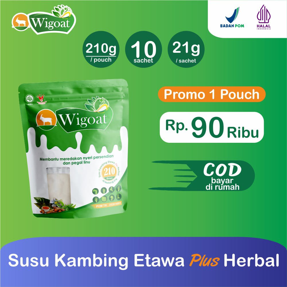 Wigoat adalah susu kambing Etawa plus herbal alami yang diformulasikan dengan kunyit, daun kelor, rumput mutiara, daun salam, dan sidaguri untuk menjaga kesehatan tubuh.